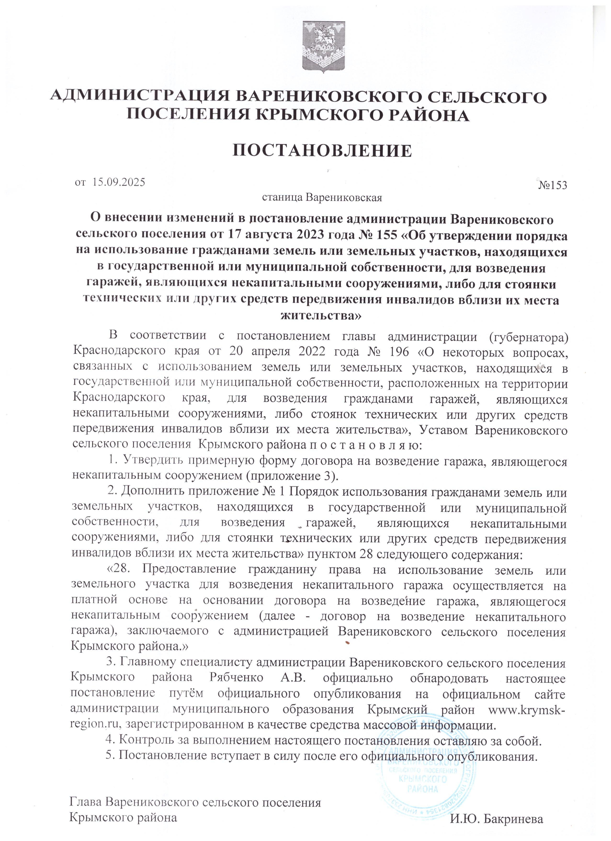 | 16 | 25.08.2025 | Постановление администрации Кеслеровского сельского поселения Крымского района | 22.08.2025 | 127 | Об утверждении примерной формы договора на возведение некапитального гаража Скачать |